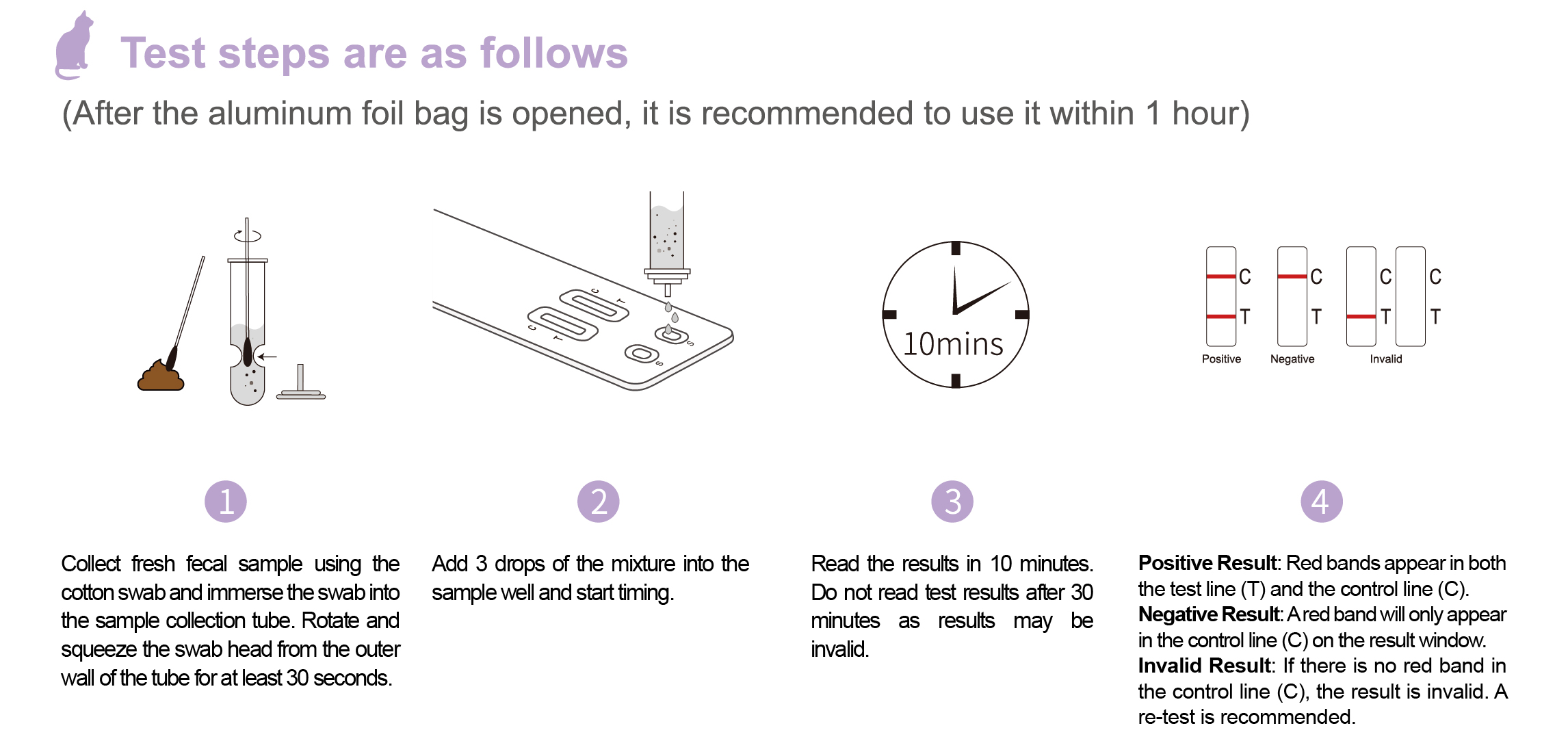 The test result is not a substitute for veterinary consultation, examination and diagnostics. This product is used for self-test.